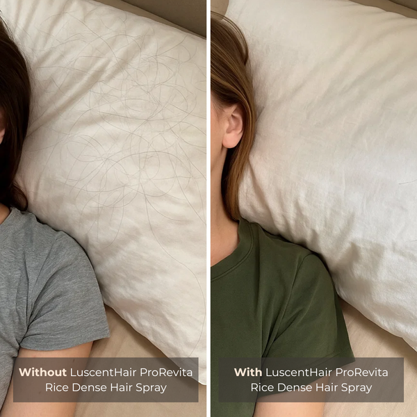 "LuscentHair ProRevita Rice Nutri Hair Spray combines the proven tradition of rice water with modern actives like Biotin, Caffeine, Aloe Vera, and Ginger. This lightweight daily spray nourishes the scalp, helps minimize visible shedding, and supports the appearance of thicker, fuller hair over time. Its gentle, plant-based formula makes it suitable for both men and women seeking a natural alternative for hair wellness."